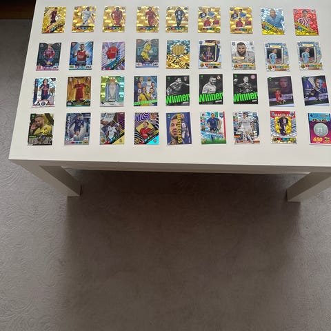 Stadium club chrome-topps finest-chrome bundesliga-topps chrome euro 24-Chrome-Merlin-deco-teamsæt bayern-teamset chelsea- teamset manCity-håndfuld danske spillere imellem . 700-800 kort dubletter her og der . 1 nr kort og det er Joachim Andersen pink prizm til /199 kan sendes på købers regning.