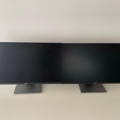 Jeg sælger to ens, velfungerende Dell 22" Full HD IPS skærme, der begge fungerer fint. Mulige tilslutningsmuligheder: 1x DisplayPort, 1x DVI-D (med HDCP) og 1x VGA (analog). Strømkabler og DisplayPort-kabler medfølger. Prisen angivet er per styk, men tag gerne begge med for samlet kr. 700,-