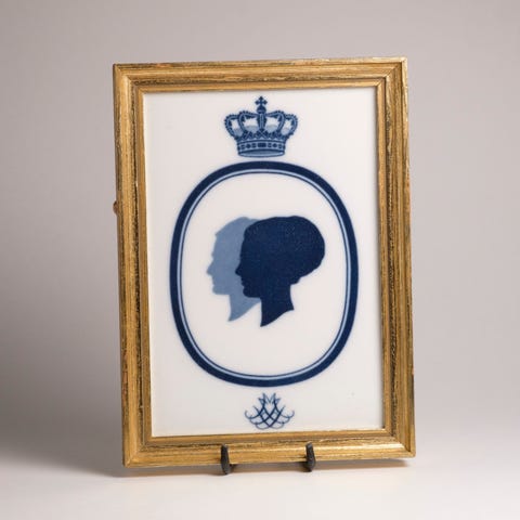 Royal Copenhagen reliefplakette i hvidt porcelæn. Rund vægplakette med portræt i relief af to personer i profil. På forsiden er der præget datoen 10. juni 1967. Bagsiden har Royal Copenhagen stempel og ophængsbøjle, så plaketten kan hænges på væggen. Velegnet som dekorativt indslag i indretningen eller som samlerobjekt for porcelæn fra Royal Copenhagen.L 15 cm x B 15 cm x H 1 cm.