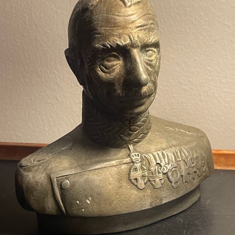 Kong Christian X Bronze buste, signeret Leif H 1940. Højde 15 cm, bredde 12 cm. Vægt: 1,925 kg.