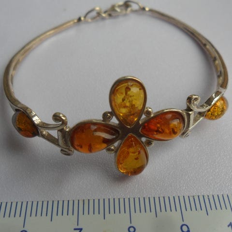 Håndlavet armbånd i ægte rav og Sterling Sølv 925 : 23 gr. Helt ubrugt