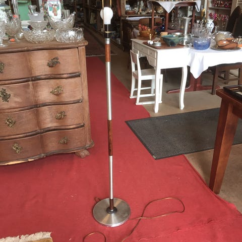 Så vidt jeg har kunnet finde ud af er lampen oprindelig med to fatninger, som har siddet hvor der er en skrue øverst på stammen - se venligst billede 3.