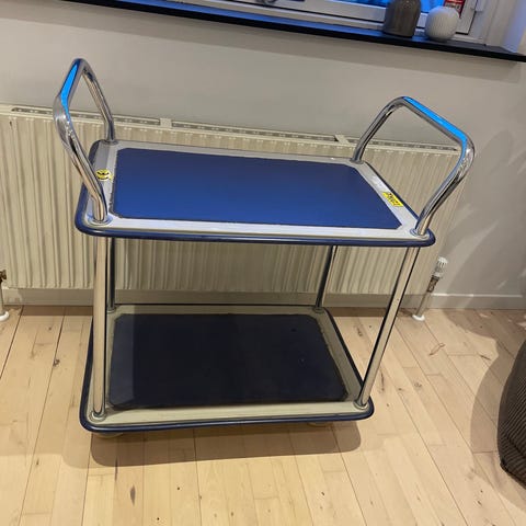 Transportvogn med fastmonteret håndtag. Vognen har fire hjul, som gør den egnet til flytning af kasser, værktøj eller andet gods i værksted, lager eller garage. Fladen er rektangulær og lav, så den er nem at læsse og aflæsse. Velegnet til indendørs brug på faste gulve.