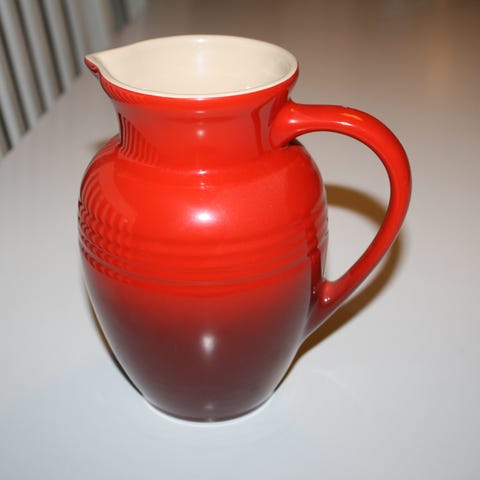 Søgeord: Le Creuset, cerise-røde farve, kande, Le Creuset kande, Køkkenudstyr, Flødekande, Mælkekande, Kakao kande, indretning, Kande stentøj