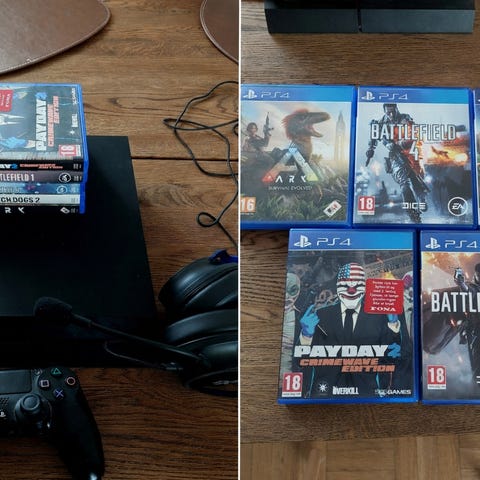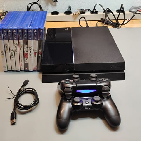 PS4 med 2 controller 4 spil alt fungere perfekt pæn. Med ladekabel og strømstik.