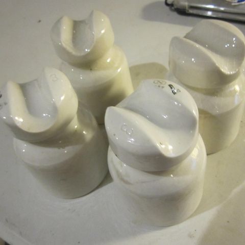 Brugte dansk producerede højspændings klokker i porcelæn.