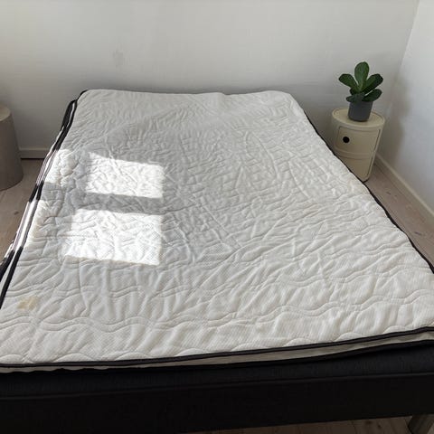 Sengen kommer med 2 top madrasser så den er ekstra blød og med hvide ben der nemt kan tages af og sættes på