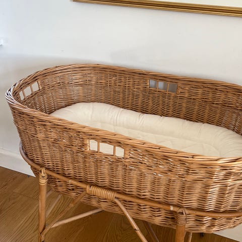 Helt oanvänd. Fantastiskt fin, ingenting saknas eller är defekt, perfekt skick. Hjul och madrass ingår i priset. Dyne och pude på bild ingår ej.