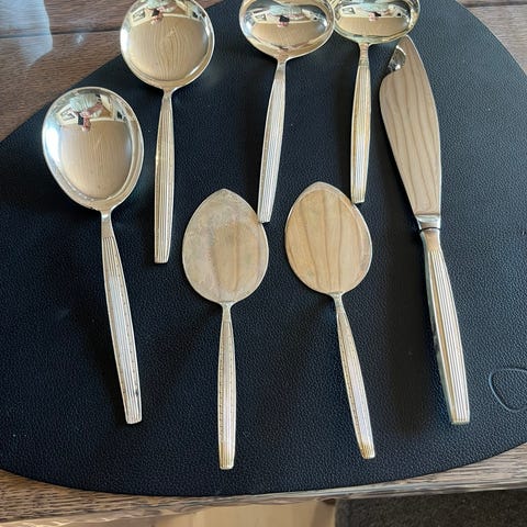 Bestik sæt med mønstret skaft. Sættet indeholder kniv, gafler, spiseskeer og teskeer samt serveringsdele. Bestikket har ensartet dekoration langs skaftet og egner sig til daglig brug eller som komplet borddækning til flere kuverter. Bestik
