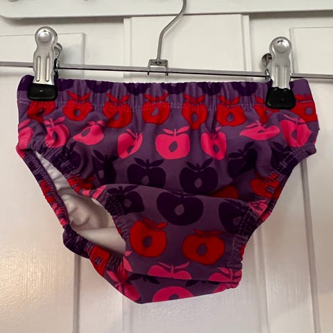 Baby Ble-Badebukser fra Play. Pink m/grønne blomster og flæser bagpå. Står 100% som nye. UPF Factor 50+