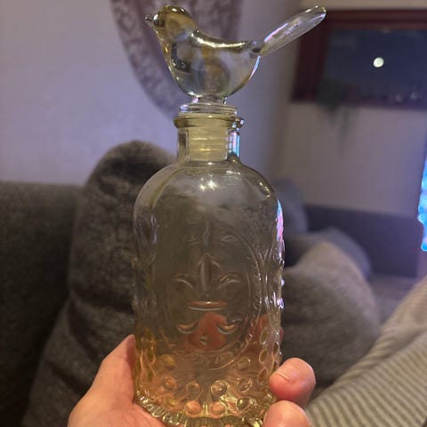 Flot glas krus med slebet/graveret krondyr/rådyr, kan bruges som krus eller vase eller bare til pynt.... fejler intet, der er dog graveret på : "Peder 28-9-73" (pris derefter...)