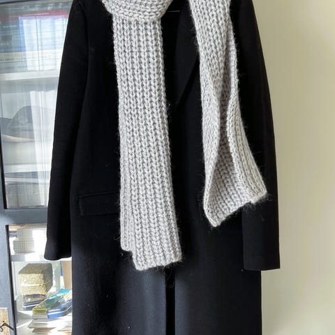Tørklæde med ternet mønster i rød, sort og hvid. Tørklædet har frynser i enderne. Måler 200x75 cm, i 100% uld