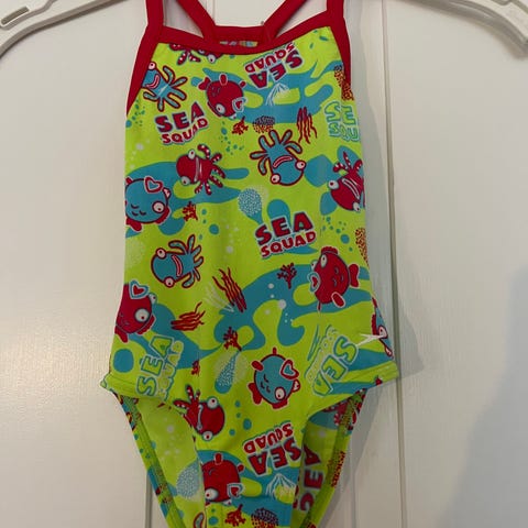 BEMÆRK: Det er fra fabrikkens side at det gule ser falmet ud - det er ikke urin som en skrev og spurgte om. Badedragten er brugt på én ferie (7 dage) og efterfølgende selvfølgelig vasket. Der er aldrig blevet tisset i den.