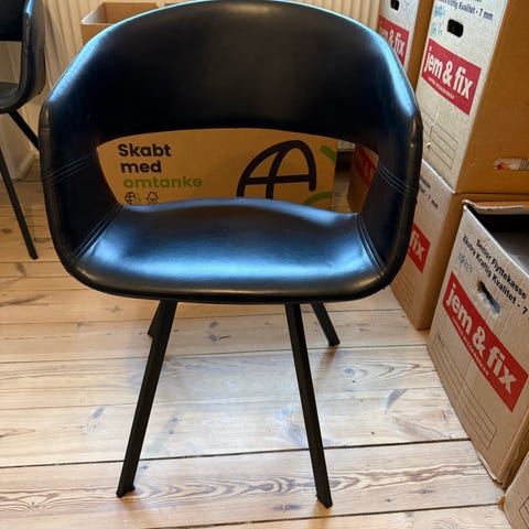 Hvide stole pænt i Ilva. En stol er i god stand, men de øvrige tre skal have en kærlig hånd på sæderne, da de har været stablet. En stol er samlet, mens de øvrige tre er usamlede - alle skruer medfølger.