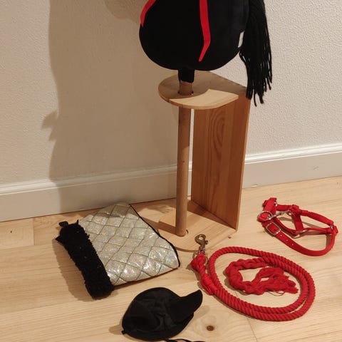 Med hesten hører der et hovedtøj, en grime, et dækken, et fortøj, et træktov og en nissehue med.