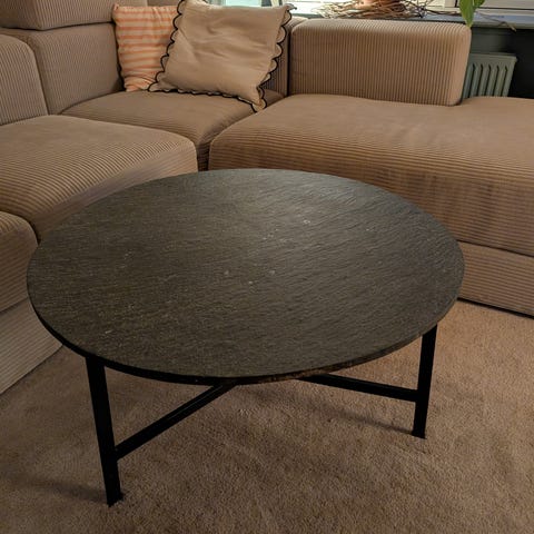 Sofabord i metal med skiferplade – robust og stilrent