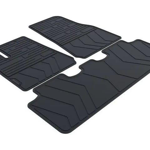 Porsche gummimåtter til bilens forreste sæder. Sæt med gummimåtter, formstøbt til bilens bund. Måtterne er udført i sort gummi med forhøjede kanter og riller, der hjælper med at holde snavs og væske på måtten. Velegnet som bundmåtter i bilens kabine. Originale og i god stand.