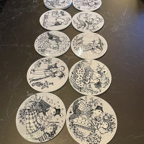 3 flotte platter fra Bjørn Wiinblad og serien Rose Garden.