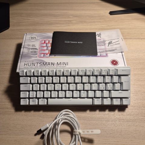 Sælger mit Razer Huntsman Mini gaming-tastatur.