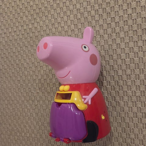 Vtech legetøjstelefonen er med stemmeaktivering, så barnet kan snakke med Gurli Gris.