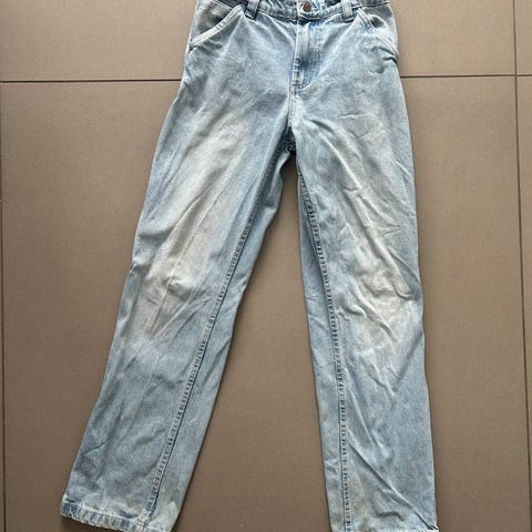 Mono jeans bukser til dreng i str. 174 / 16. Bukserne er i blå denim og har klassisk femlommers-design. Materialet er denim, som er slidstærkt og egnet til hverdagsbrug. Velegnet som almindelige hverdagsbukser til skole og fritid.
