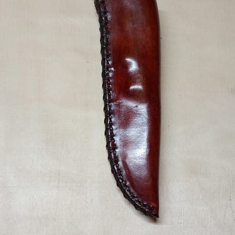 Lille jagtkniv udført af gode materialer og håndsyet læder skede.