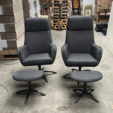Skal lænestole. Betrækket er falmet og med få pletter. Betrækket er intakt.