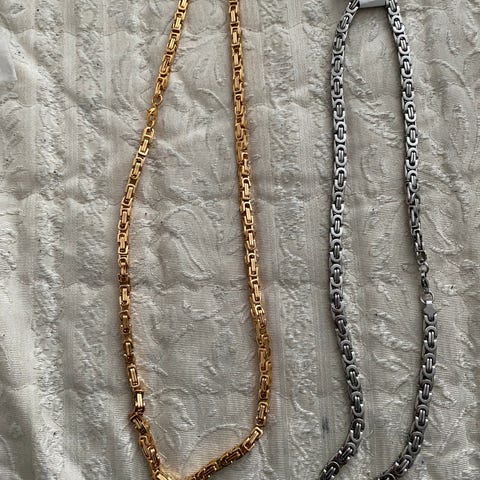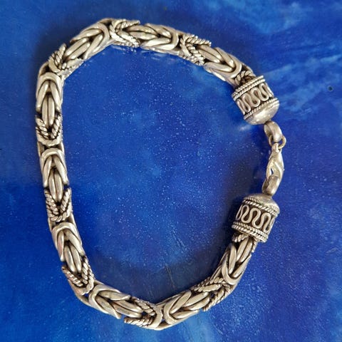 Kongekæde halskæde i sølv sælges for 700,00 kr. Det er lavet for 30-35 år siden på aftenskole og derfor ikke stemplet. Det er 49 cm langt og vejer 52 gram. Kan sendes med GLS og DAO