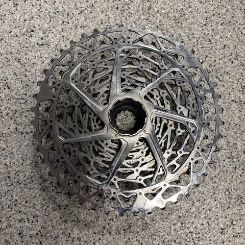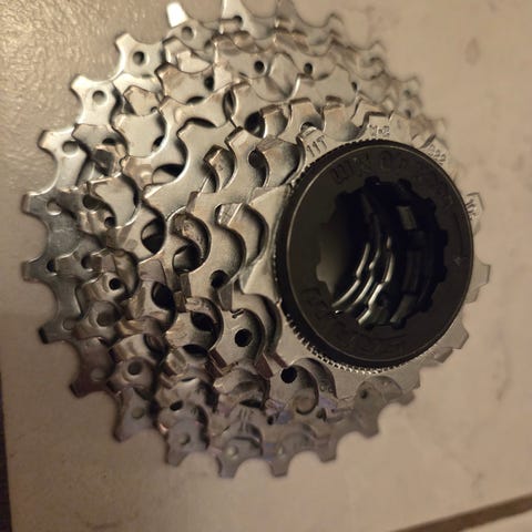 Kassetten har kun været monteret og brugt meget lidt på hometrainer, så den fremstår stort set som ny. Ingen slid fra udendørs kørsel.