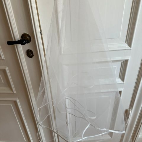 Smukt brudeslør med blonder og perler, brugt en enkelt gang.