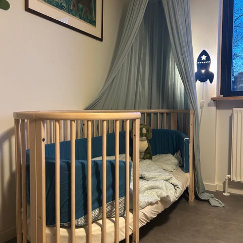 Stokke Sleepi tremmeseng i naturfarvet træ.