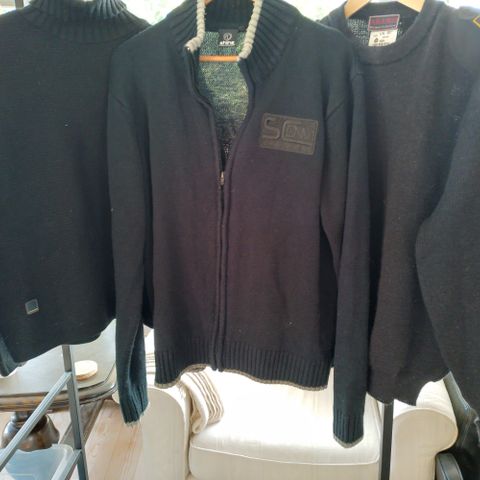 Zara herre rullekrave sweater i størrelse 42. Sweateren er sort og strikket i uldblanding med overvejende uldindhold (70 % uld og 30 % polyamid). Klassisk model med høj rullekrave, lange ærmer og ribkanter ved hals, ærmer og bund. Velegnet som varm trøje til hverdag eller arbejde i køligere vejr.