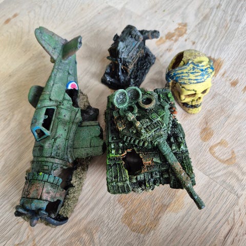 Dekorationssæt til akvarium med kunstige planter og figurer