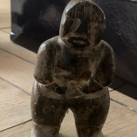 Grønlandica - fedtsten - thulemand - har måske haft et spyd - signeret JM 11 - h 5 cm