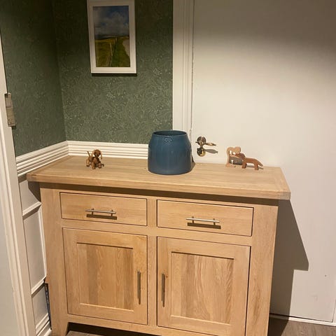 Fremstår fin med lidt brugsspor. Dog intet der ses tydeligt. Sortbejdset eg. Nypris 22.000,- sælges for blot 2000,- skal bæres med fra 1. Sal.