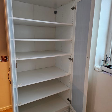 Rummeligt og super praktisk dobbelt PAX skab fra Ikea. Komplet med indretning, indeholdende, softclose skuffer med og uden glasfront, kurve, stang til bøjler, hylder mm. Skabet har indvendig belysning med sensorer, der tænder og slukker når skabet åbnes og lukkes. Skabet er beklædt med Vikadal Spejllåger, hvilket gør rummet som det står i større. Skabet kan også bruges som spejl, så et ekstra spejl ikke optager plads. Fremstår som nyt og sælges på grund af flytning. Det perfekte skab til forældresoveværelset, teenageværelset, den lille bolig (alt i én) eller blot til opbevaring.