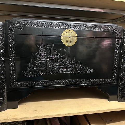 Meget smuk kamferkiste. Ideelt til opbevaring, smykkekiste osv. Se mål på billederne. Meget pæn stand.