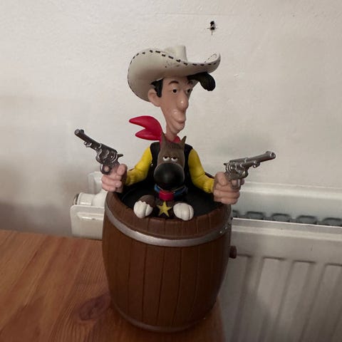 Lucky Luke sheriffstjerne i metal legetøj. Stjernen er formet som en klassisk sekskantet sheriffstjerne med teksten "Lonesome Cowboy" på forsiden. Fremstillet i metal og leveres på original blisterkort med Lucky Luke-motiv. Egnet som udklædningstilbehør eller samlerobjekt. Producent: Wicke. Ikke egnet til børn Med Lucky Luke Sheriff Star vil du føle dig som den ensomme cowboy. Det perfekte tilbehør til Carnival og alle fans af western-serien.