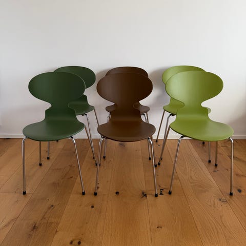 Myren fra Arne Jacobsen stol grøn med kromben