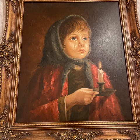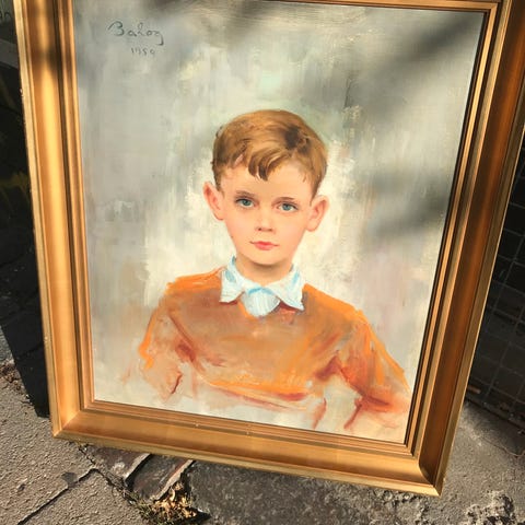 Maleri portræt af dreng olie på lærred med træramme ca. 60x80 cm