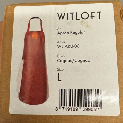 Helt nyt/ubrugt læderforklæde i cognacfarvet bøffellæder fra Witloft. Forklædet er fremstillet i kraftigt, fuldnarvet læder med justerbar nakkestrop og remme. Velegnet til brug i køkken, grill, værksted eller lignende. Designet med læderdetaljer og logo på brystet samt stropper til ophæng eller fastgørelse af udstyr.