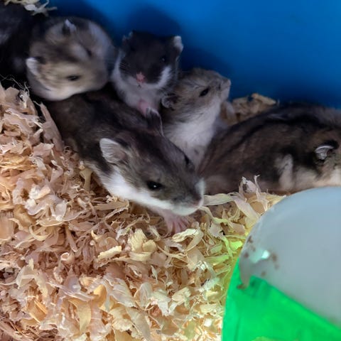Han er hårdtam og er maget aktiv og elsker godter han er ca.4-5 måned gammel tilbehør med bur og en start pakke med