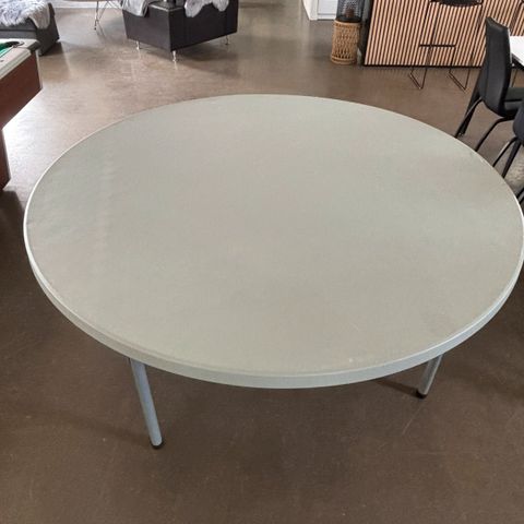 3 stk Runde klapborde i hvid plast med grå metalben. Bordet kan klappes sammen, så det fylder minimalt ved opbevaring. Egnet som ekstra bord til fx have, terrasse, fest eller arrangementer. Flere borde af samme type kan ses på billederne, og konstruktionen gør dem stabile i brug og nemme at transportere og stille væk efter behov., sælges både enkelt og samlet 150kr pr stk