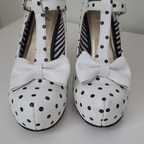 Superflotte glimmer-sko i skind med hæl og sløjfe - kun prøvet på