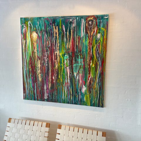 Maleri 44x34 cm i varme farver (kunstner Henrik Jensen)
