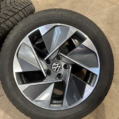 Super flotte originale 18" VW ID.3 vinterhjul med gode Continental vinterdæk. De er med dæktryks ventiler. De har siddet på en VW Id.3 fra 2021. Passer på alle Id.3 modeller samt Cupra Born.