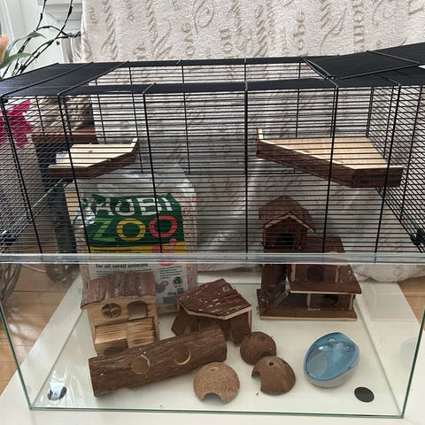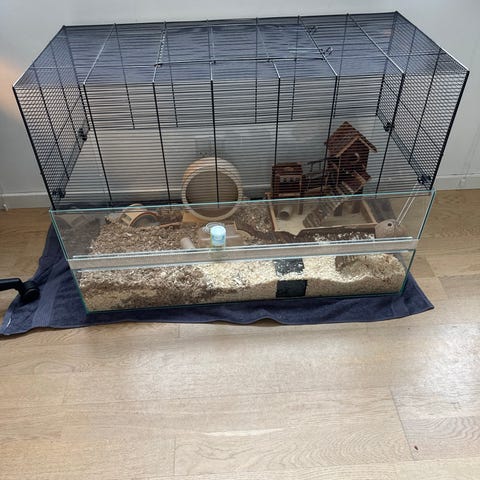 Strøelse og andet udstyr (separat foto) følger IKKE med, men kan tilkøbes.