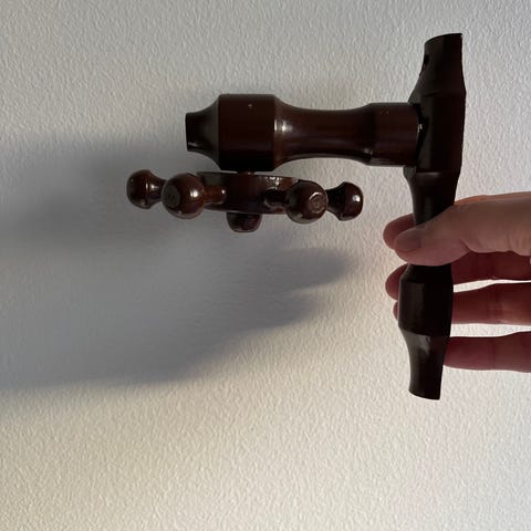 Knage, Retro, lille fin knage med hjul i brunt træ.