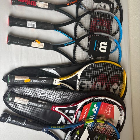 Super fine tennis ketchere og taske. Næsten ikke brugt, kun med meget få skræmmer. Wilson ketcheren har fået nyt greb, som kun er blevet brugt få gange. Babolat ketcheren har få, men meget små skræmmer, men er en ketcher jeg har været meget glad får. Tasken er næsten helt ny, er kun blevet brugt enkelte gange. Overordnet set er det et rigtigt fint sæt til en der godt kan lide at spille tennis i sin fritid🎾