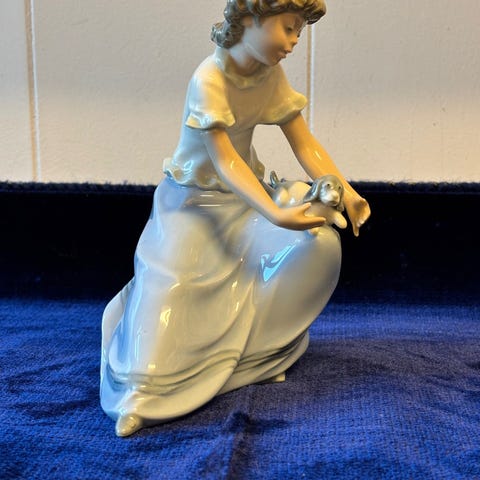 Rigtig fin Lladro NAO Pige med hundehvalp nr 1091 sælges for 300,00 kr. Den er 17 cm høj, 10,5 cm lang og 12,5 cm bred. Fremstår hel og fin uden skader og skår.